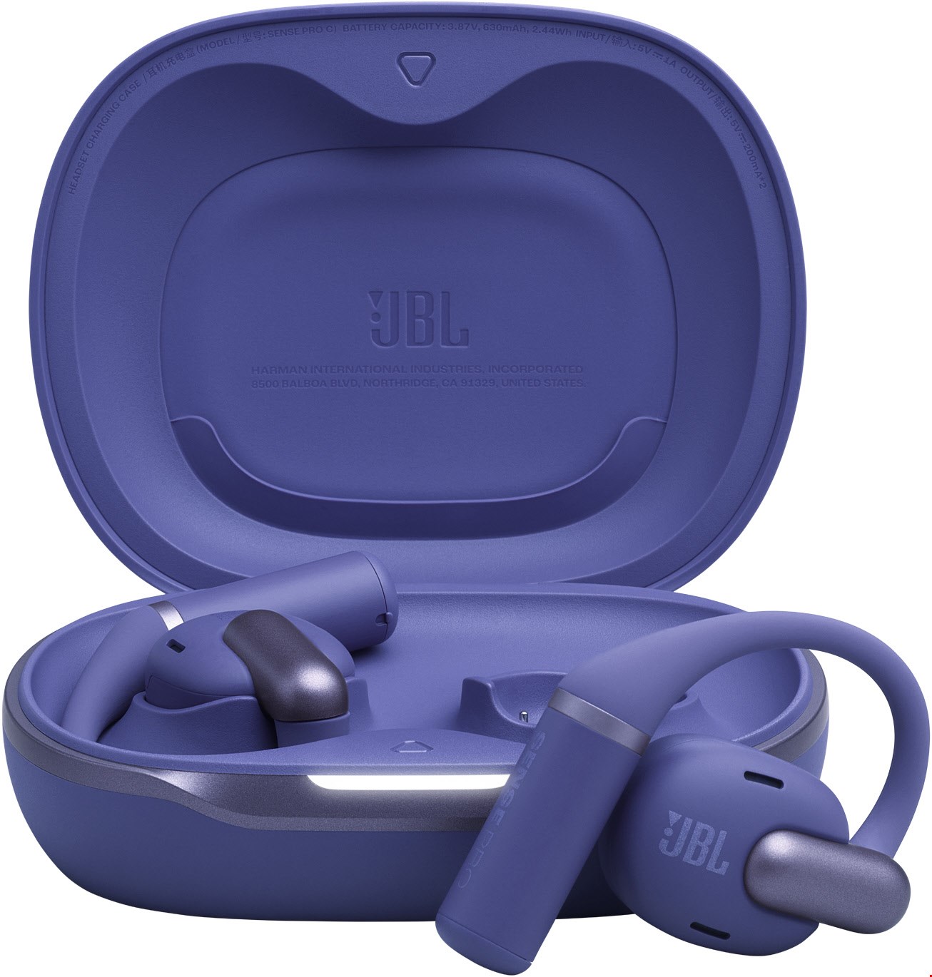Um die JBL Sense Pro Kopfhörer aufzuladen, legen Sie sie einfach in das Ladeetui. Das Ladeetui kann mit dem mitgelieferten USB-C Kabel an eine Stromquelle angeschlossen werden. Eine vollständige Ladung dauert etwa 2 Stunden.